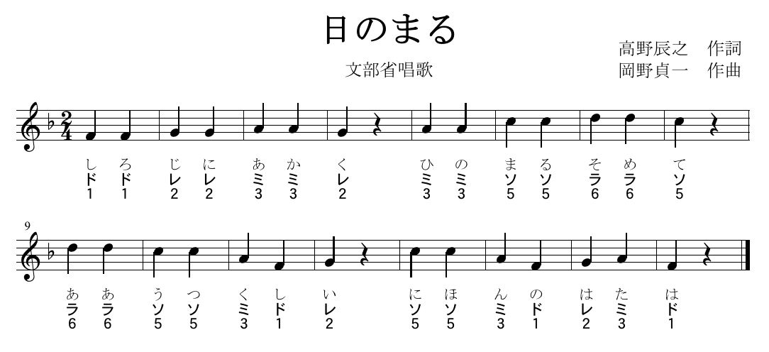 「日のまる」(文部省唱歌) 高野辰之作詞/岡野貞一作曲