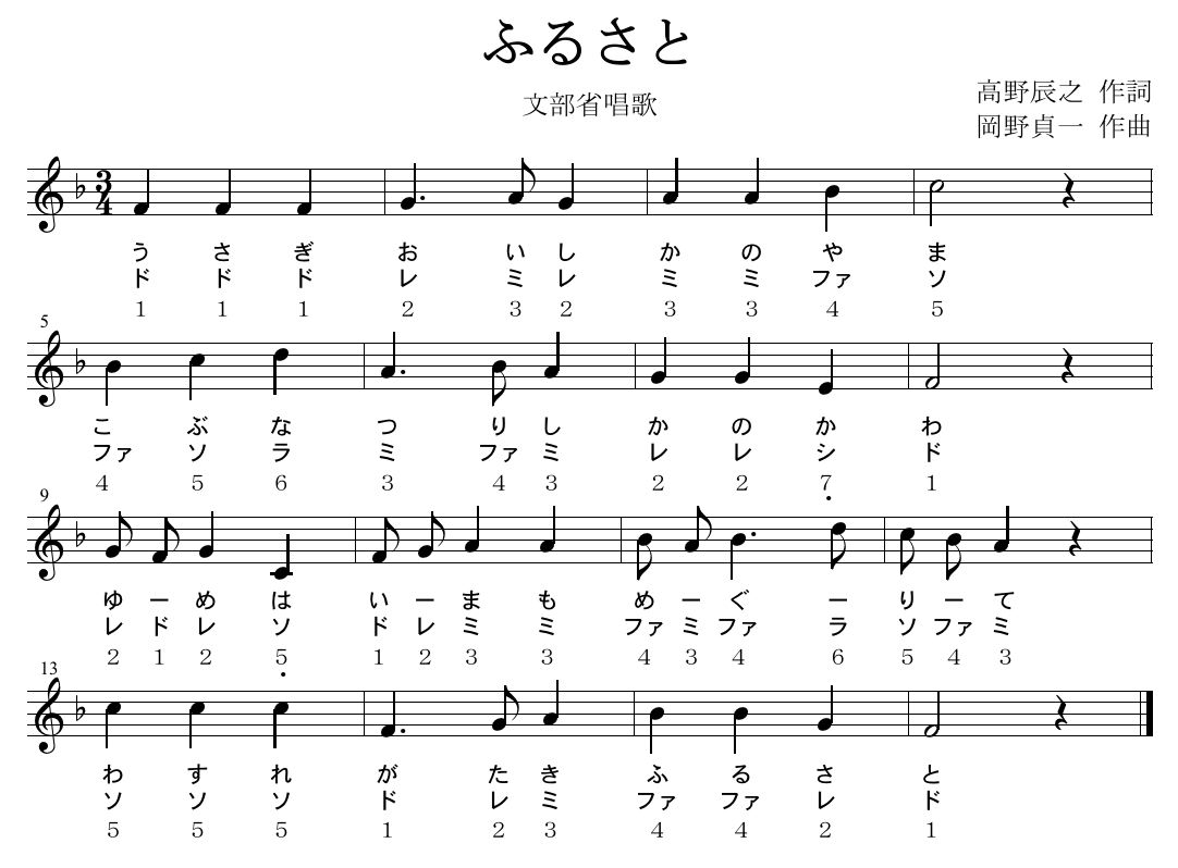「ふるさと」(文部省唱歌) 高野辰之作詞/岡野貞一作曲
