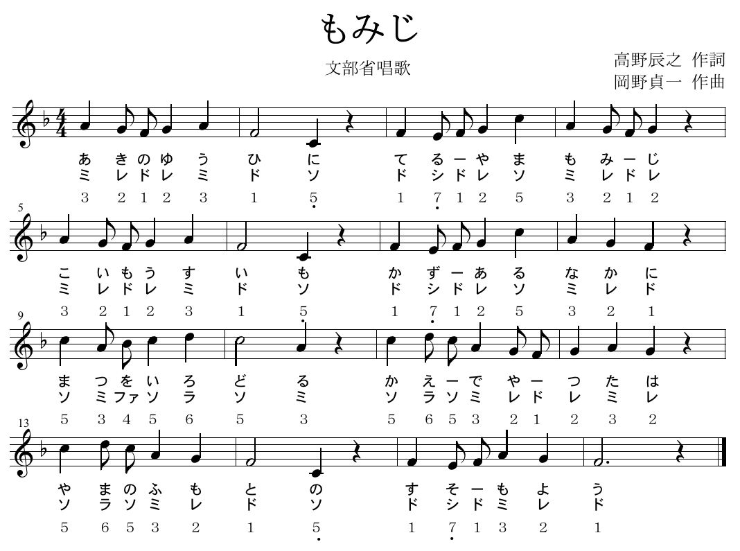 「もみじ」(文部省唱歌) 高野辰之作詞/岡野貞一作曲